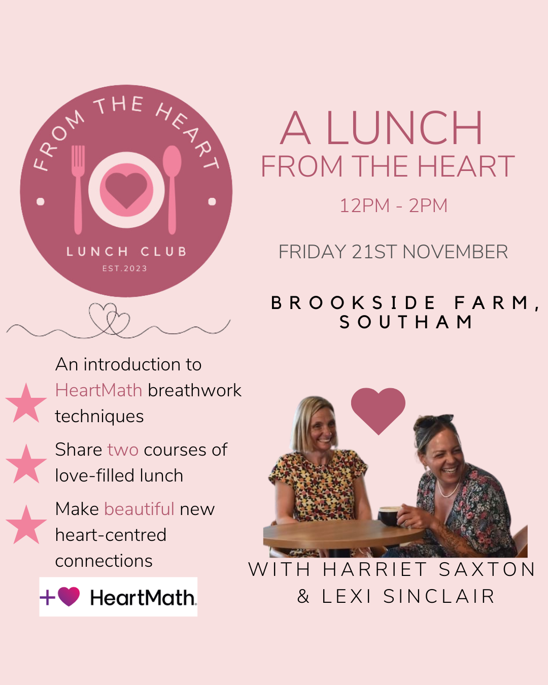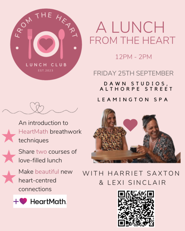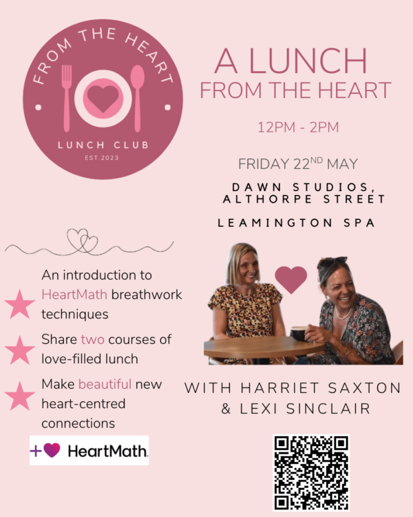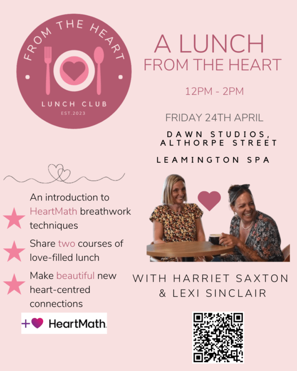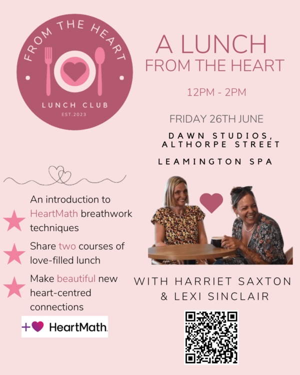 'A Lunch from the heart’ Monthly Lunch Club with Nutritional Chef, Lexi Sinclair and Health Coach & HeartMath Coach, Harriet Saxton. Join our community, building heart centred connections. Enjoy nourishing food, and learn how to manage your stress and experience more joy! Lexi will serve up two courses of delicious love-filled lunch, and Harriet will […]