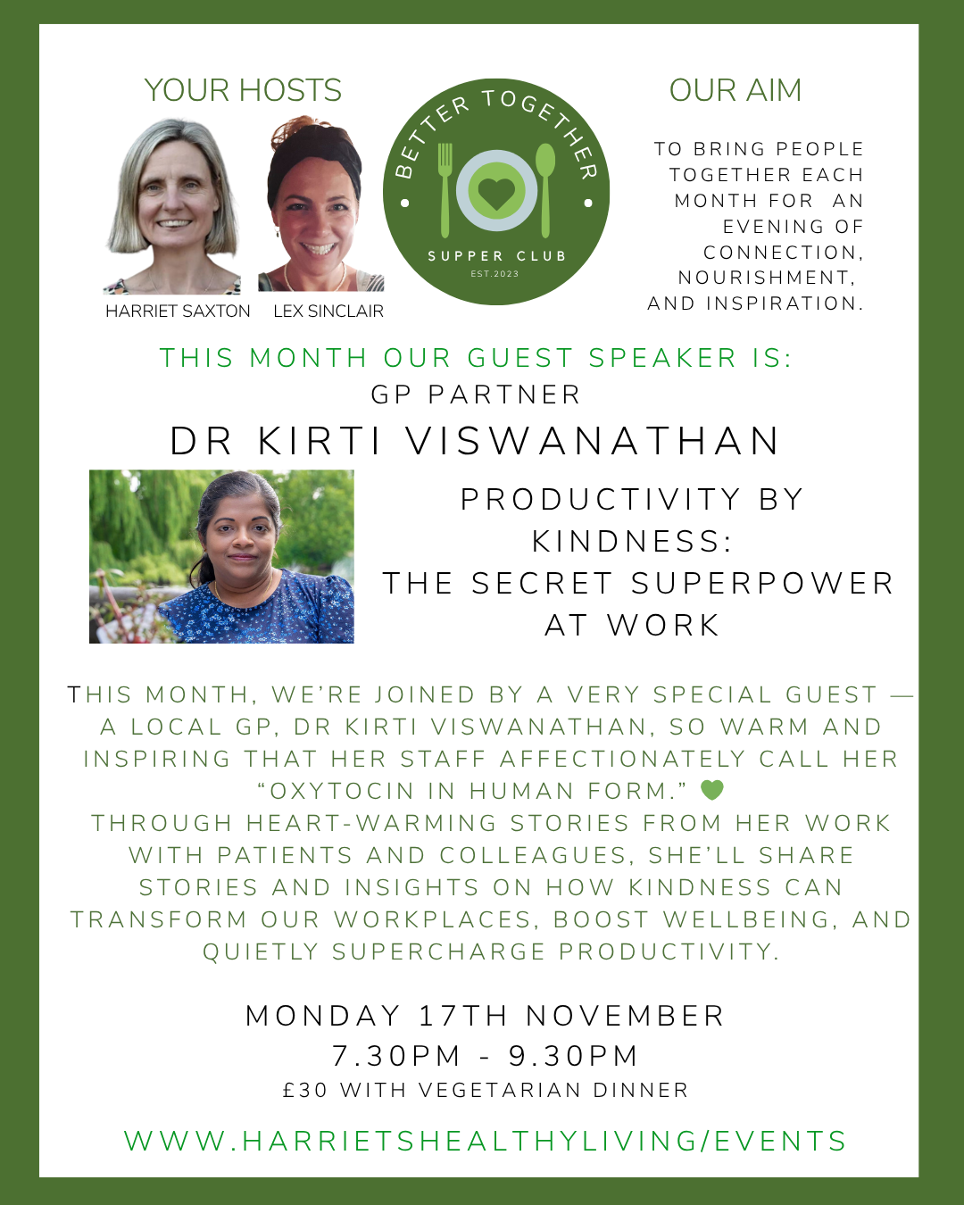 Productivity by Kindness: The Secret Superpower at Work” This month, we’re joined by a very special guest — a local GP, Dr Kirti Viswanathan, so warm and inspiring that her staff affectionately call her “Oxytocin in Human Form.” 💚 Through heart-warming stories from her work with patients and colleagues, She’ll share stories and insights on […]