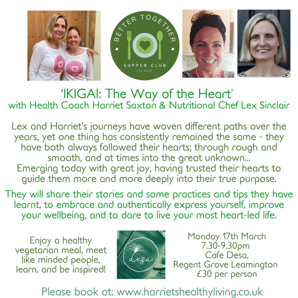 'A Lunch from the heart’ Monthly Lunch Club with Nutritional Chef, Lexi Sinclair and Health Coach & HeartMath Coach, Harriet Saxton. Join our community, building heart centred connections. Enjoy nourishing […]