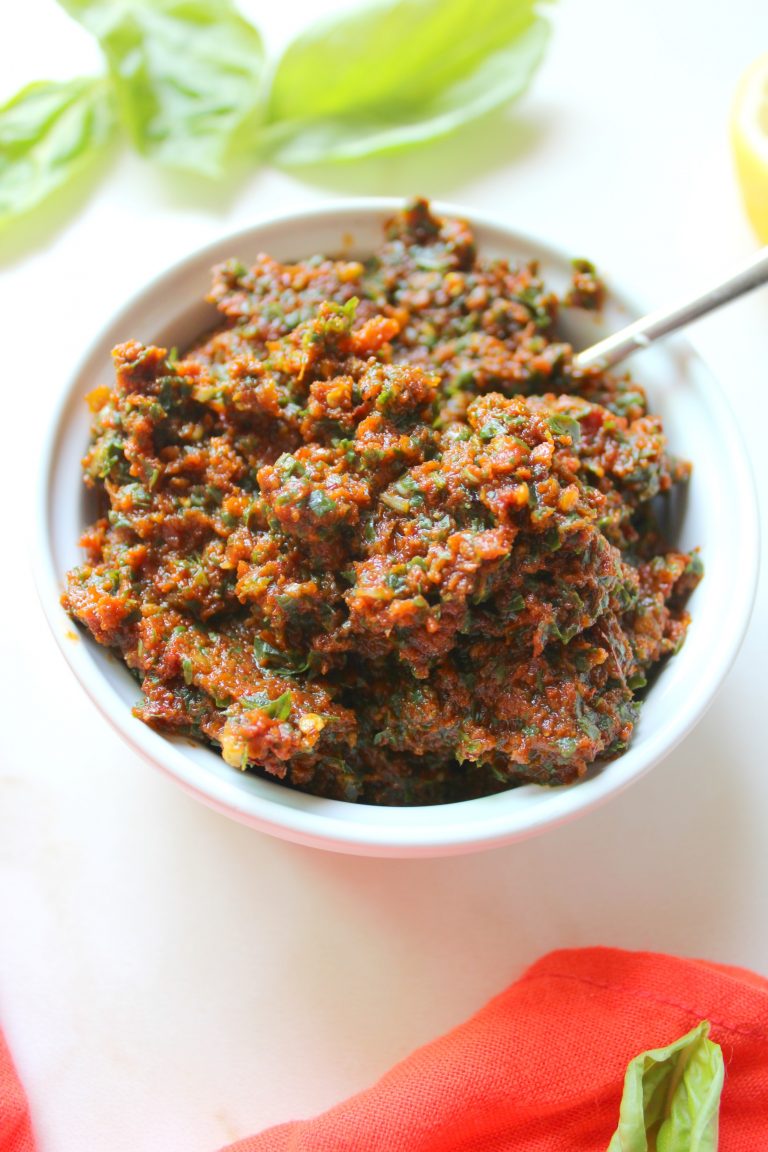 - Put the sundried tomatoes into a bowl of boiling water and leave to soften for 5 minutes