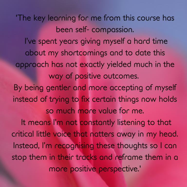 The key learning for me from this course has been self-compassion.